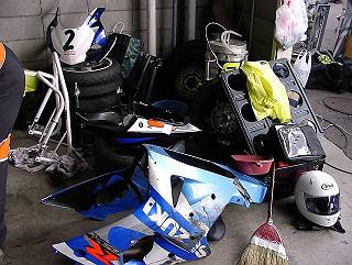 GSXR1000、予選前日に那須で転倒。。。ギリギリで修復し、車検に間に合わせる。