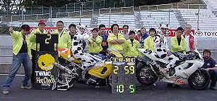 Twmc1組59番CBRのライダーは久留米っ子さん、Twmc2組2番GSXRのライダーはkyonちゃん